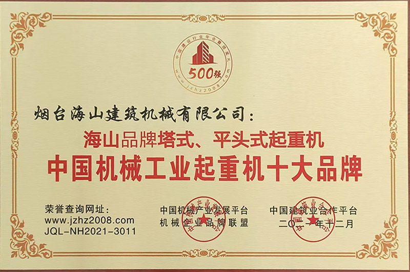 2021年評(píng)為中國(guó)起重機(jī)械知名品牌